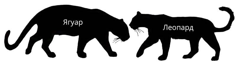 — Фигура гепарда в профиль выглядит почти квадратной, а ягуар и леопард вытянуты и приземисты.