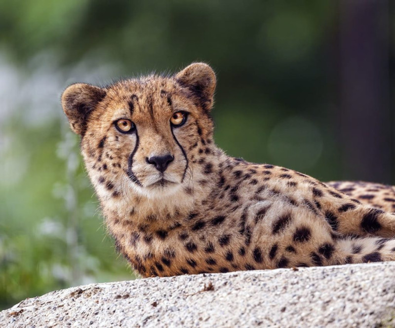 — Особенность окраса морды гепарда — вертикальные черные полосы от уголков глаз вниз, вдоль щек и по бокам носа.