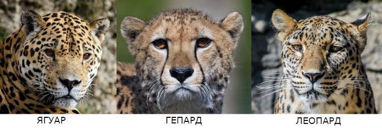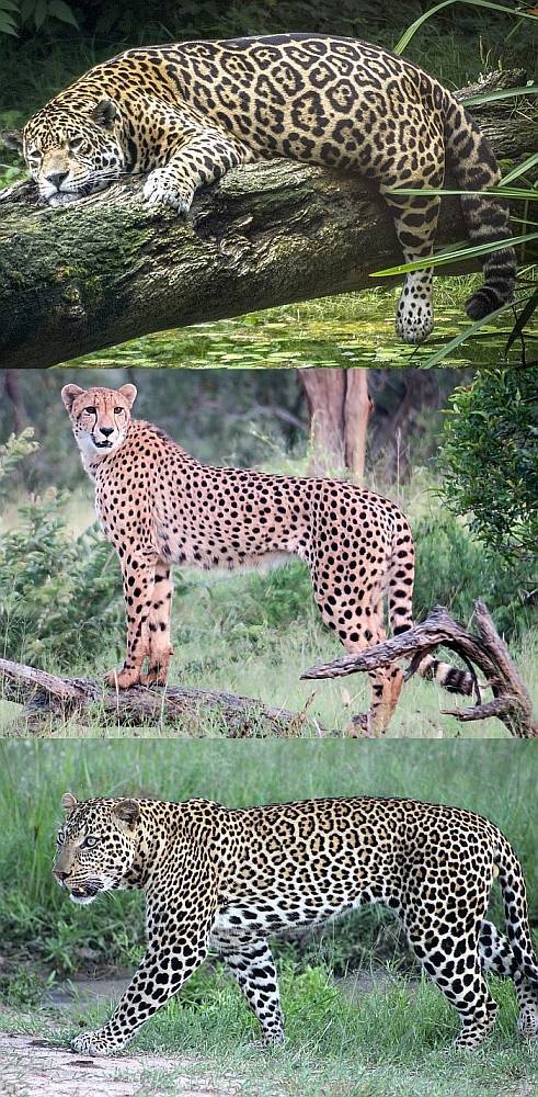 Сверху — ягуар, в середине — гепард, внизу — леопард