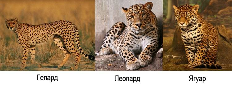 Фото: Внешний вид гепарда, леопарда и ягуара