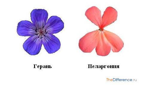 Между растениями есть и внешние отличия. Они касаются в основном самих цветков. У герани они в большинстве случаев одиночные. Пять, реже восемь, лепестков такого цветка собраны в правильном порядке и не отличаются между собой по форме, размеру и окраске. Развитых плодородных тычинок у герани десять.