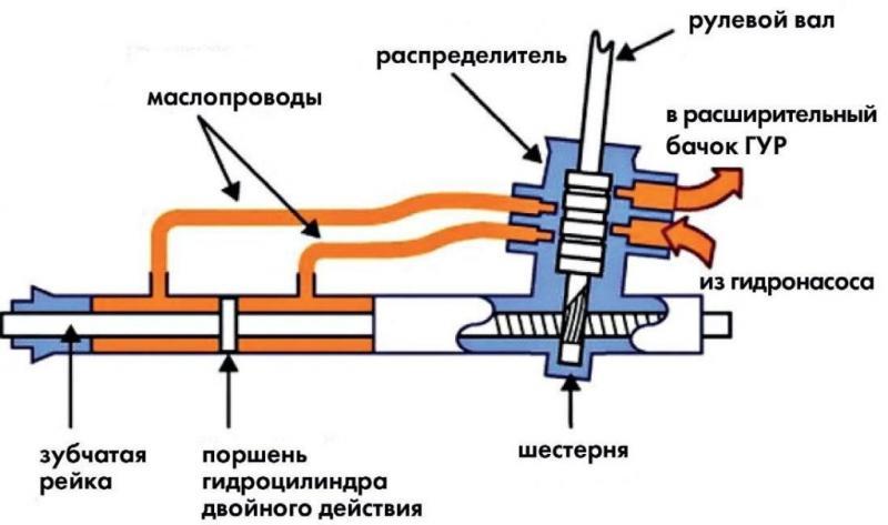 Схема механизмов гидроусилителя руля