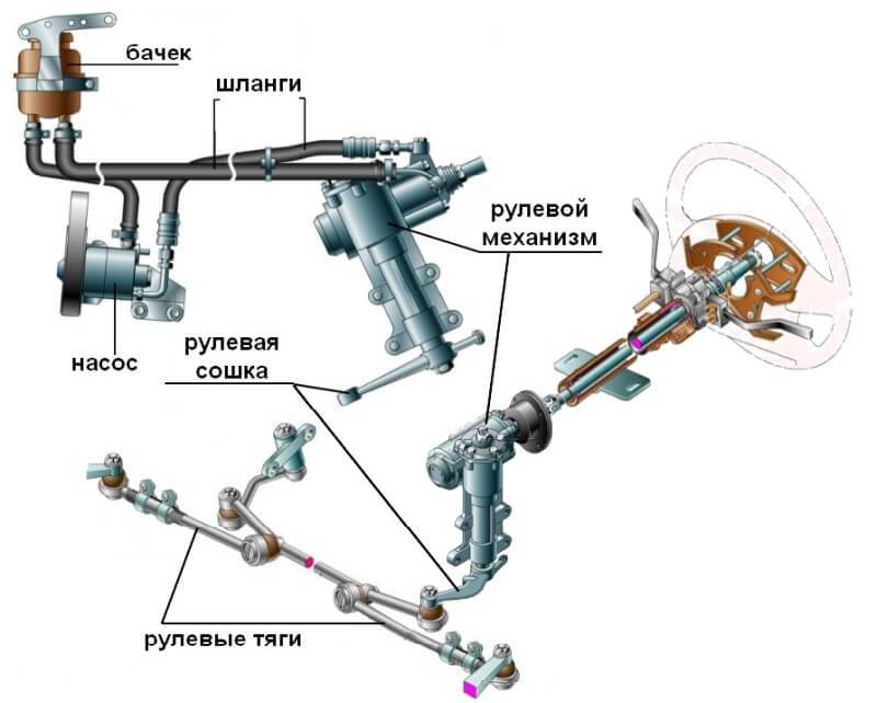 Составные компоненты системы гидроусилителя руля: