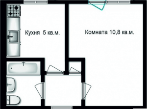 Если квартиры переделаны из бывшего общежития, то планировка будет больше походить на малосемейную. Чтобы из общежития сделать квартиру, объединяют две комнаты, из одной комнаты устраивают небольшой совмещенный санузел и отдельную кухню. А вторая комната служит жилым функциям.