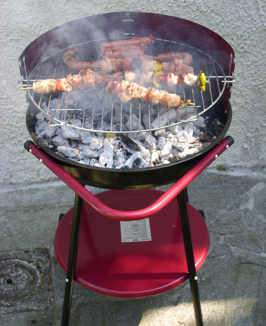 - одноразовые: это простая жаровня из тонкой стали, в которую кладут уголь и накрывают решеткой. После того, как вы используете такое барбекю, у него прогорит дно, и второй раз на нем пожарить мясо не получится;