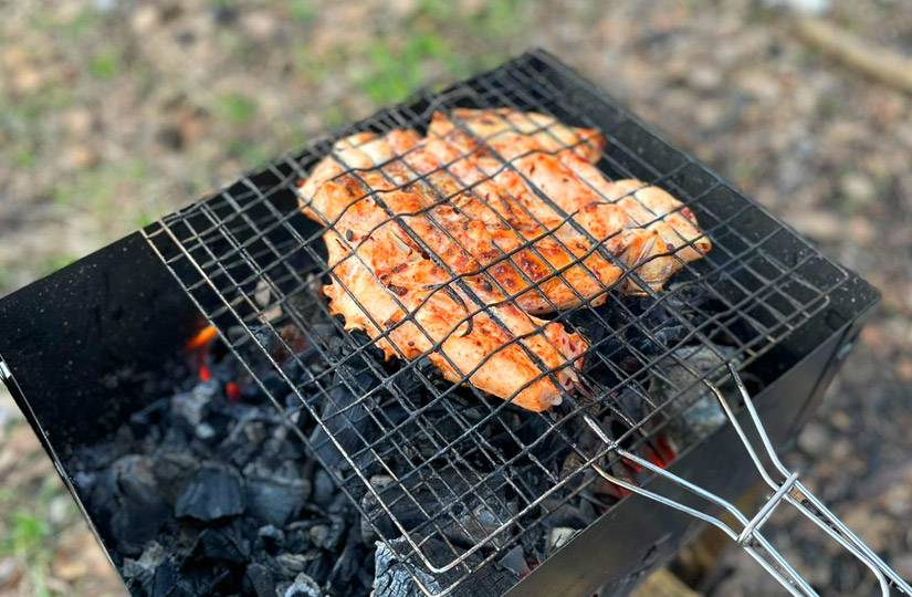 Нельзя забывать о таких любимых всеми колбасках. Ведь в большой компании — это просто незаменимый вариант, который не уступает по вкусовым качествам шашлыку. Можно приготовить курицу-гриль. Хотя некоторые стараются не утруждать себя и приобретают в супермаркете уже готовую курицу. Различные виды рыбы и морепродуктов тоже с успехом можно приготовить на углях. Правда, здесь понадобятся некоторые навыки. Ну и какой же пикник без овощей! Очень вкусным получается запечённый на гриле помидорчик, кабачок, баклажан или картофель, ну и, конечно же, грибочки.