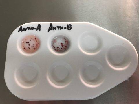 Кровь соединяют с реагентом, который содержит антитела: к каждой капле крови отдельно добавляют цоликлон анти-А, анти-В или анти-D (последний — тест на резус-фактор).