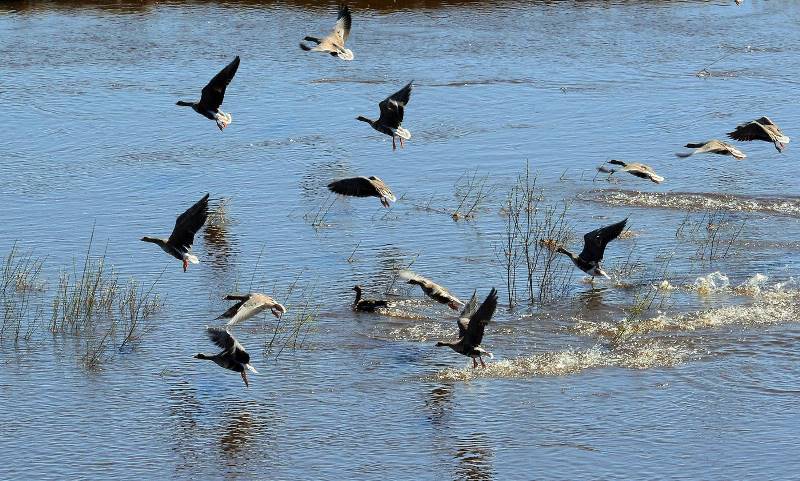 Птицы заселяют Северное полушарие, Европу, Азию, Америку, Африку и Австралию. Они ведут различный образ жизни. Это зависит от породы птицы. Есть виды диких гусей, живущих и строящих гнезда в лесах, поблизости от которых есть реки или озера. Их называют серыми гусями. Любителей степей и саванн относят к шпорцевым и полулапчатым. Горные гуси заселяют берега высокогорных озер. Что касается северных птиц, то они любят перелеты, чего не скажешь о южных. Они ведут более оседлый образ жизни. Из нашей страны птицы перелетают на зимовку в Европу, Азию, Индию, Мексику и Японию.
