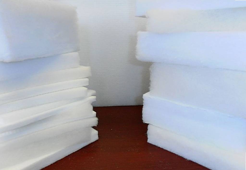 Добросовестные производители изготавливают полотно только из первичного сырья. Такой наполнитель не несет вреда человеческому организму, и обладает более высокими эксплуатационными свойствами. Продукция из вторичного сырья хуже по качеству, и может испарять токсичные вещества. Отличить качественный синтетический ватин довольно просто: он упругий по своей структуре, тусклый и плотный, белого цвета.
