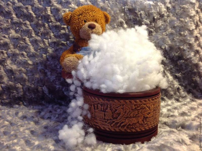 Каждое волокно холлофайбера закручено в настолько тугую пружинку, что кажется маленьким шариком. В целом же масса утеплителя напоминает пушистый снежный сугроб или воздушное облако.