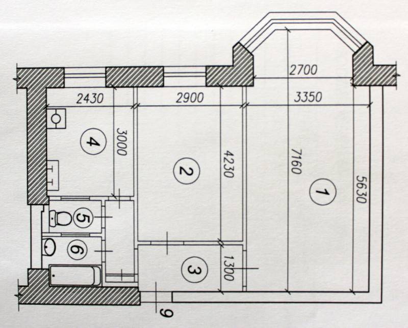 Проекция одного из брежневских домов. Отличие от хрущевки — комнаты раздельные, площадь большая, санузлы раздельные
