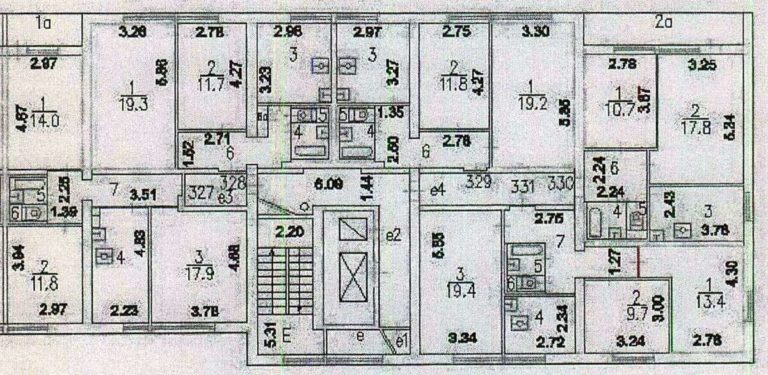 На площадках обычно располагалось 2-3 квартиры. Однокомнатных меньше, чем 2-3 комнатных.