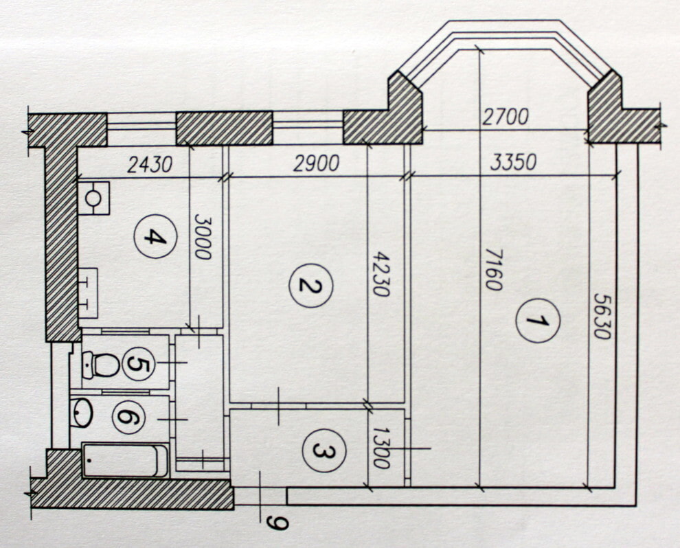 Шаг поперечных стен увеличен до 3,3м. Кажется незначительным. Но по этой причине маленькие комнаты имеют более квадратные пропорции, чем в брежневских и хрущевских домах. По крайней мере, вы можете сделать диван шире, и разместить кровать по всей комнате.