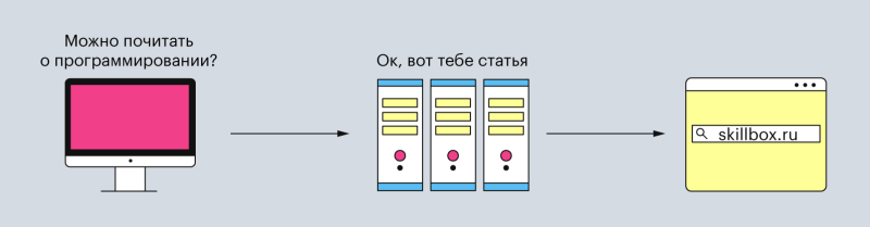 Примерно так браузер просит нужную ему веб-страницуИллюстрация: Polina Vari для Skillbox Media