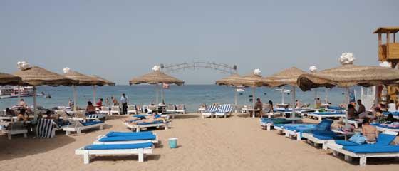 Шарм-эш-Шейх — специально построенный курорт с численностью населения порядка 40 тысяч человек. Почти все местные жители заняты в туристическом секторе и работают в отелях, ресторанах и других заведениях. Вдоль берега расположены в основном пятизвёздочные отели с большой территорией и собственным пляжем. Трёх- и четырёхзвездочные гостиницы находятся на второй и третьей линии. Тем не менее у них есть собственные участки на пляже. Популярными районами Шарм-эш-Шейха для пляжного отдыха считаются Наама Бэй, Шаркс Бэй (Сохо), Хадаба (Рас-Умм-эль-Сид) и Шарм-эль-Майя.