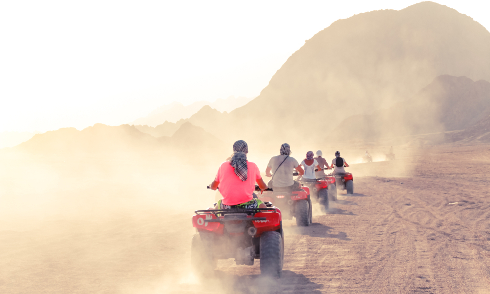С Запада город окружают горная цепь и пустыня. Здесь можно устроить безумный заезд на джипах и квадроциклах, прокатиться на верблюдах, встретиться и пообщаться с бедуинами. Среди популярных пустынных экскурсий следующие: