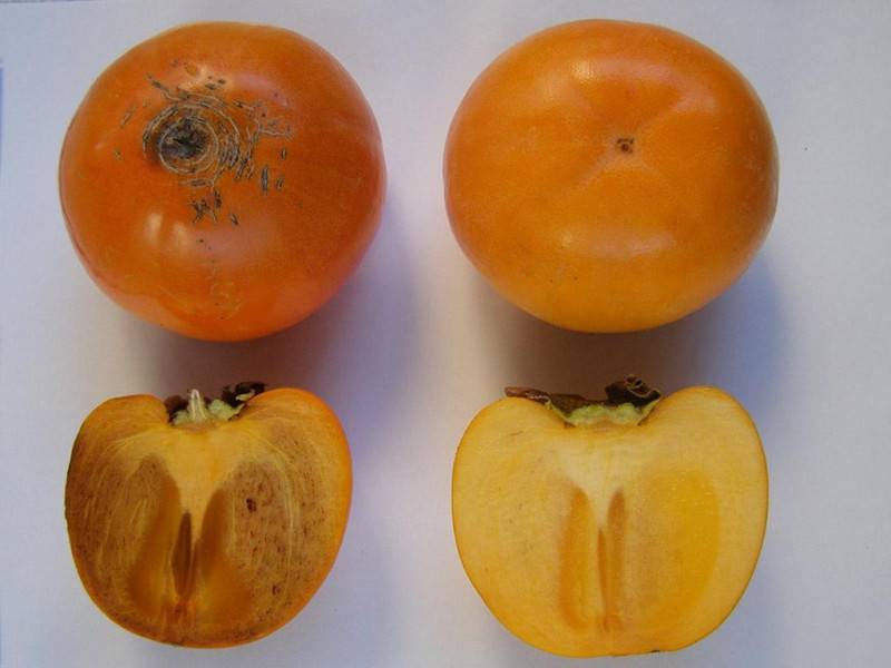 Появление этого брака связано с проблемами опыления, которые возникают по разным (погодным) причинам. Такие плоды никогда не станут вкусными и мягкими. Причем от срока созревания вкус их уже не зависит: терпкими могут быть и раннеспелые, и среднеспелые, и позднеспелые сорта. Плоды шоколадной хурмы, снятые недоспелыми, когда они еще твердые, через несколько дней приобретают коричневый цвет и становятся мягче. Для этого их нужно положить на несколько дней в теплое, защищенное место, но не на солнце.