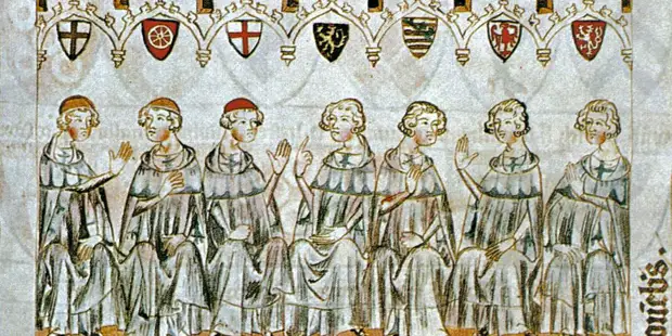 В 1356 году Золотая булла(Законодательный акт империи. — Прим.ред.) Карла IV установила порядок выборов императора и статус выборщиков. В их состав вошли семь князей — курфюрстов, ставших высшей знатью империи. В числе великолепной семёрки были четыре светских властителя(король Богемии, герцог Саксонии, пфальцграф Рейна, маркграф Бранденбурга) и три князя-архиепископа(Майнцский, Трирский и Кёльнский).