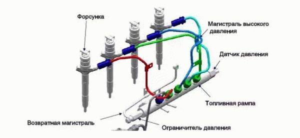 - Топливная рампа. К ней походят трубка или шланги от магистрали, а также зачастую вкручиваются сами инжектора.