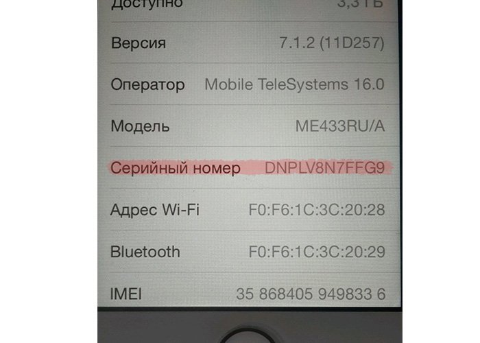 - В настройках ищем обязательные пункты – серийный номер и модель телефона. На экране находим значок с надписью — «Настройки», нажимаем далее жмем — «Основные» — «Об этом устройстве». Не нашли модели и серийного номера – 100% подделка.