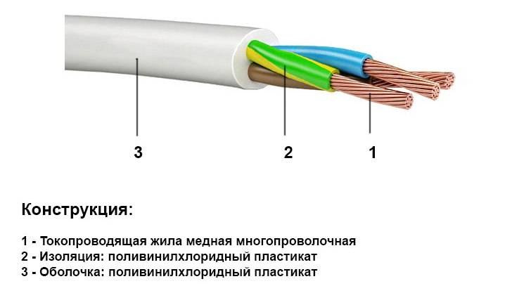 - токопроводящая жила из меди или алюминия (или несколько проводов в скрутке);