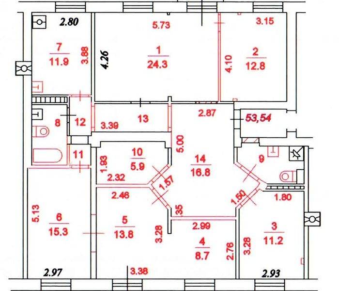 Кроме того, что план содержит технические характеристики, он также включает схематичное изображение помещений. В начале основные параметры отмечаются черными линиями, а в случае проведения капитального ремонта или других работ, изменяющих параметры, новая информация отражается на чертеже красными линиями. Стоит отметить, что любое изменение должно быть согласовано и подписано сотрудником соответствующего государственного учреждения.