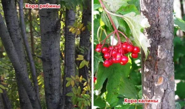 Кора куста имеет серовато-коричневый оттенок. Вы также можете увидеть небольшие трещины в нем. Кору можно использовать в лечебных целях. Его можно собирать ранней весной. Недосушенную кору можно погнуть, а сухую – сломать. Калина также отличается от рябины побегами – они зеленовато-красные и слегка заостренные. Не все ветви могут приносить плоды; на бесплодных побегах можно обнаружить 1 почку.