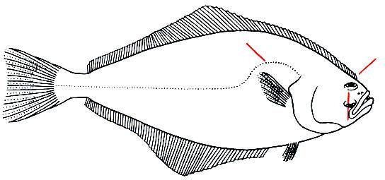 Глаза их сначала расположены по бокам тела, затем один глаз — правый или левый постепенно переходит на другую противоположенную сторону, и тот бок где остаются оба глаза становится «верхом» рыбы, а другая брюхом, которое становится светлым и грубеет, так рыба камбала постоянно скользит по дну.