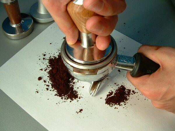Пере началом работы машины рожкового типа кофе необходимо утрамбовать