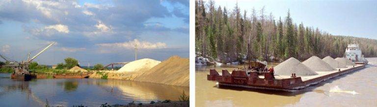 Сама добыча оказывается дорогим удовольствием. Нужен плавучий земснаряд и приемная баржа-гидроотвал с возможностью сброса стекающей воды. На ней же могут выполняться и некоторые простейшие операции по очистке, после чего подготовленная масса отправляется на временные склады. Если дно реки заиленное, на берегу смесь обязательно проходит дополнительную обработку – так получают речной мытый песок. Технология несложная, однако из-за дороговизны оборудования себестоимость заметно возрастает.