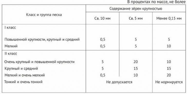 Первый вид характеризуется диаметром, который не превышает 2 мм. Среднезернистый песок бывает от 2 до 2.8 мм, а последний вид достигает до 5 мм.