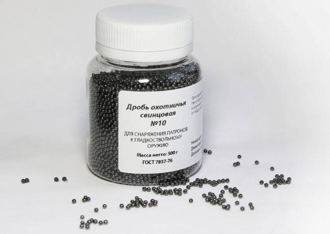 - Свинцовая дробь. Самый распространенный и дешевый вид баллистического снаряда. Ввиду того, что при производстве используется достаточно легкий и мягкий металл, такая дробь подойдет для отстрела только небольших животных и птиц.