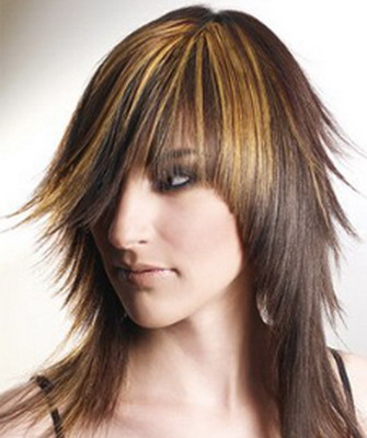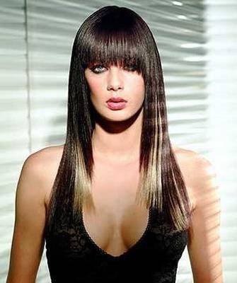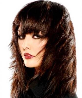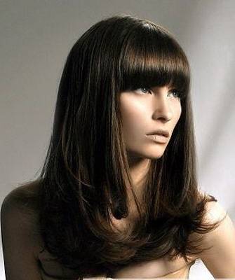Наиболее модны, а что главное, универсальны два варианта челок. Первый, длинные – до бровей – густые и прямые, они отлично контрастируют с многослойным контуром прически и в тоже время отлично корректируют овал лица. Такая челка будет великолепно смотреться на обладательницах узких и вытянутых к подбородку лиц. Она отлично уравновешивает их пропорции и делает черты лица изящнее.