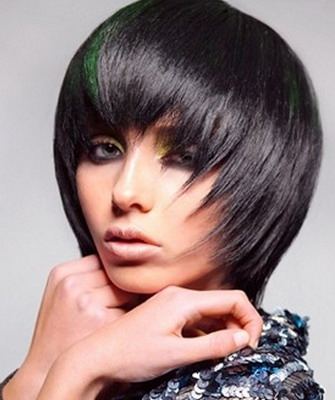 Прическа основана на градуированной угловой стрижке. Длина подбирается в соответствии с особенностями внешности, чтобы сделать черты лица более пропорциональными. Выглядит очень живой и динамичной. Но такая укладка требует стайлинга, и нужно время от времени посещать мастера, чтобы сохранить аккуратный и стильный вид волос. Асимметрия будет хорошо смотреться на женщинах с круглой или овальной формой лица, а также с высокими скулами.