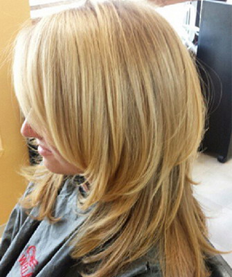 Ступеньки позволяют облегчить слишком густую шевелюру, делают волосы струящимися и воздушными, добавляют объема тем, кому это необходимо и разрешают проблему с секущимися концами.