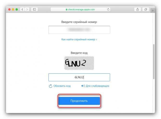 Шаг 3. В окошке под надписью «Введите серийный номер аппаратного оборудования» укажите серийный номер проверяемого устройства и нажмите «Продолжить».