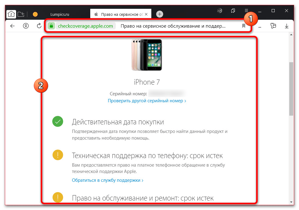 Если девайс настоящий, то на сайте отобразится остаток гарантии, информация о модели и иные данные. В противном случае будет выдано сообщение, что введенный серийный номер не верный.