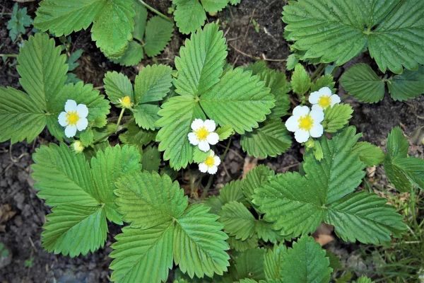 Родственница земляники садовой – ананасовая земляника. У них большой однодомный куст с мужскими и женскими соцветиями, и широкие сложные, тройчатые листья. Побеги – усы, расползающиеся в стороны и укореняющиеся.