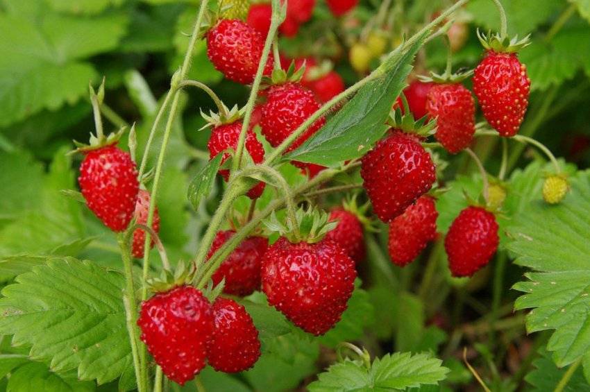 Земляничные кустики успешно растут в лесу в тени деревьев и на полевых лужайках под парящим солнцем. Состав грунта практически не влияет на плодоношение.