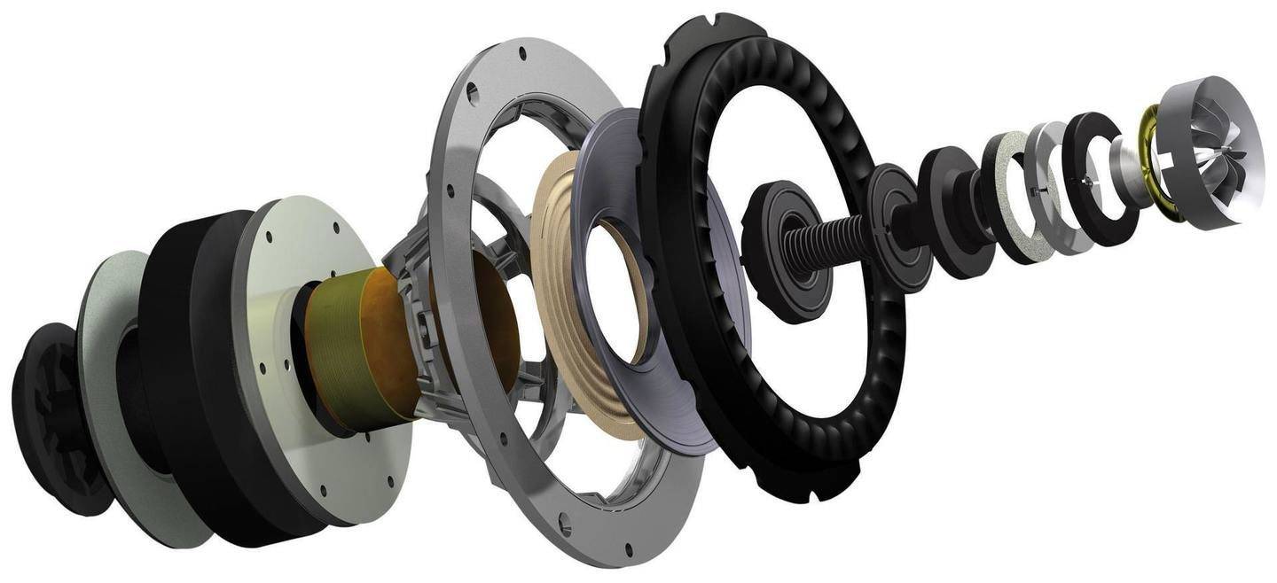 Выходом из этой ситуации стал коаксиальный драйвер. На первый взгляд такой комбик выглядит довольно просто. В двунаправленном варианте твитер расположен в центре вуфера; традиционных размеров твитеров вполне достаточно для этого. Но с инженерной точки зрения такая конфигурация сильно усложняет разработку (расчет) и изготовление такой системы.