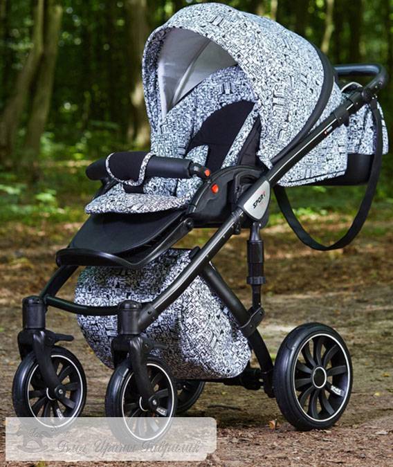 Украшенная необычными стразами модель рассчитана на малышей с 0 до 3-х лет, используется круглогодично, выполнена по типу “трость”. Комплектуется автокреслом, люлькой, прогулочным модулем. В коляске установлены пластиковые колеса, поворотные передние оборудованы фиксаторами. Автокресло оснащено откидной пластиковой ручкой, солнцезащитным козырьком, анатомическим вкладышем для головы, ремнями безопасности. Люлька представляет собой просторный короб с обивкой из натурального материала. Дно изголовья регулируется. Капюшон и внешние чехлы сшиты из влагозащитной ткани. Прогулочный блок, устанавливаемый в 2-х положениях, имеет собственную систему безопасности, представленную пятиточечными ремнями безопасности и съемным защитным бампером. Капюшон отстегивается. Средство передвижения дополнено стильной сумкой для мамы и тканевой продуктовой корзиной.