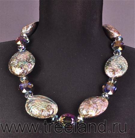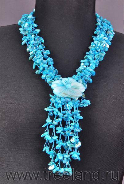 - ожерелье – как и у бус, размеры элементов примерно одинаковы, но – здесь не низание, и другой способ крепления бусин-элементов – через цепочку, на обруче, и т.п. также к ожерельям отнесла бы украшения, где чередуется крупный элемент (раковина например) с более мелкими – это уже не совсем бусы, и в то же время не колье.