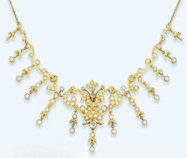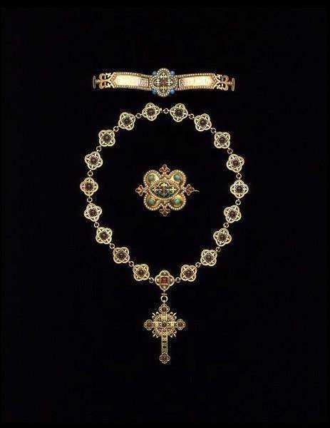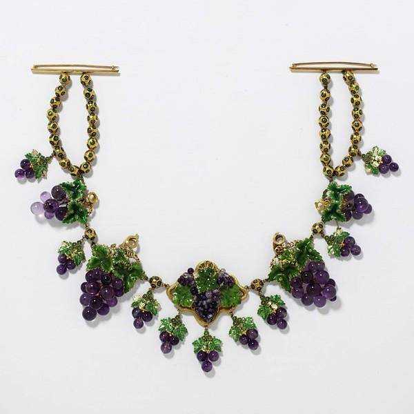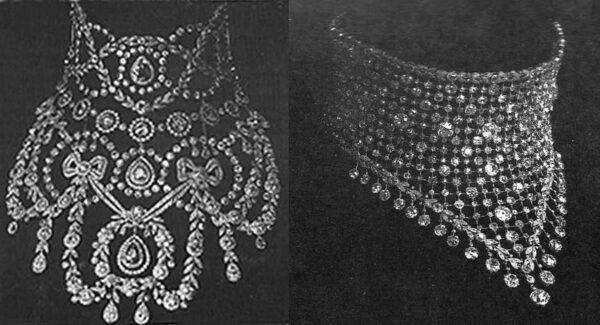 В то время особой популярностью пользовались изделия с бриллиантовыми подвесками в виде капли или звездочки. Украшение считалось парадным и надевалось на балы и светские вечера. В 1880-е годы колье стали дополняться выполненными в том же стиле брошами и серьгами.