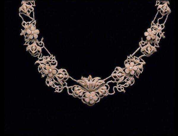 В большинстве случаев оно выполняется из благородных металлов и надевается на важные мероприятия в комплекте с вечерним нарядом.