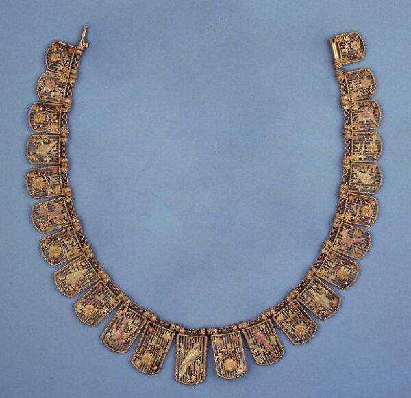 Первые колье появились очень давно. Прекрасно сохранились образцы времен Древнего Египта. В те времена это было не простое украшение, а знак отличия, принадлежности к определенной касте или сословию.