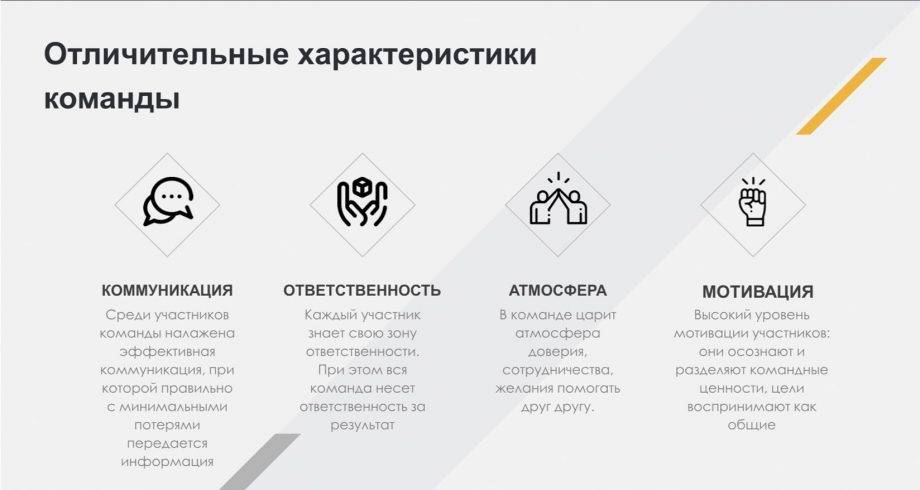 Есть несколько характеристик, которые отличают команду от группы людей. Давайте их рассмотрим.