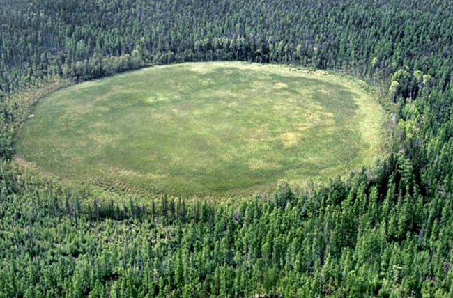 . Когда метеорит на большой скорости ударяется о поверхность земли, происходит взрыв и образуется округлой формы кратер. При относительно небольших скоростях в сотни метров в секунду метеорит может сохраниться, а кратер по размерам не будет намного больше самого метеорита. На поверхности нашей планеты известны несколько больших кратеров диаметром от одного до трехсот километра.