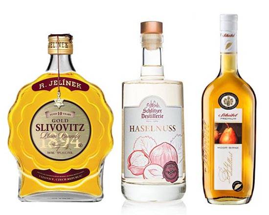 - сливовица или сливовая ракия (45-75%) — популярный в Чехии, Венгрии, Сербии и других странах Балканского региона напиток из слив, груш, абрикос, яблок и т.д.,