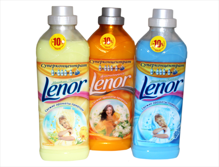 Этот кондиционер также занимает прочные лидирующие позиции в рейтинге лучших ополаскивателей для белья. Название «Ленор», пожалуй, на слуху у любой хозяйки. Жидкость выпускается в пол-литровых, литровых и пятилитровых ёмкостях, что позволяет купить удобное количество средства по индивидуальной необходимости покупателя. Кондиционеры «Ленор» пахнут: