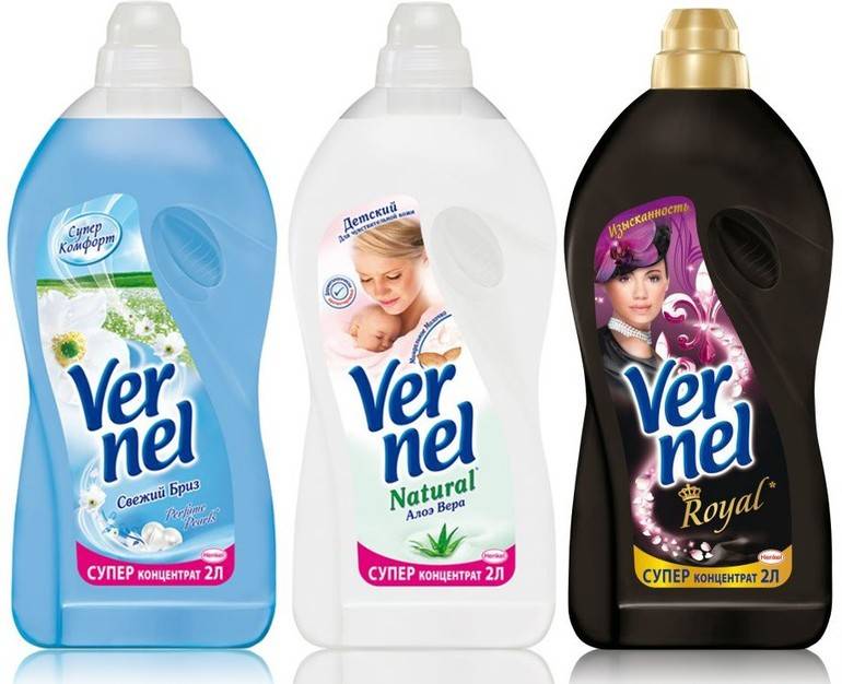 Этот бренд уже не один год лидирует на рынке моющих средств. Главной особенностью «Вернеля» является его способность защищать и смягчать ткани, сохраняя натуральную и синтетическую одежду естественно нежной. Эффект антистатика обеспечивает комфортную носку. Замечено, что финишное полоскание с этим кондиционером способствует более быстрому высыханию вещей и их лёгкой глажке.